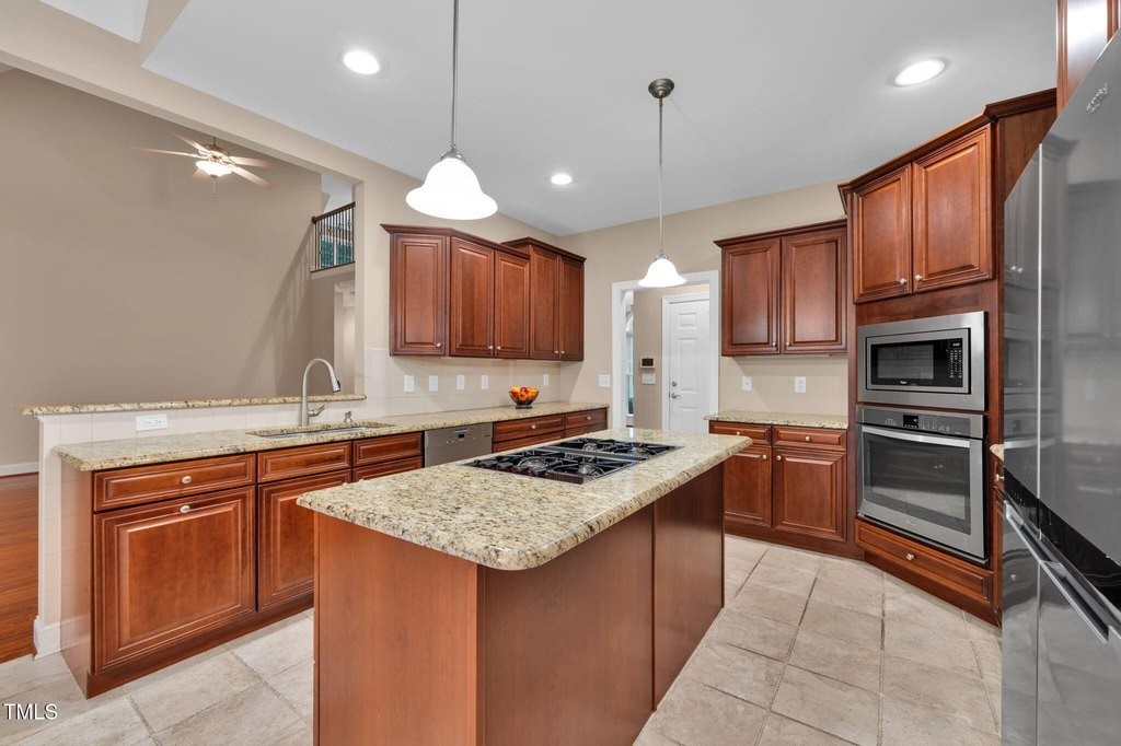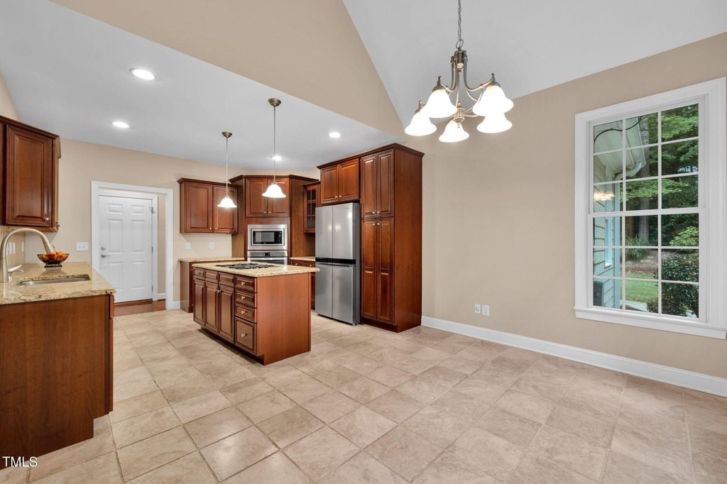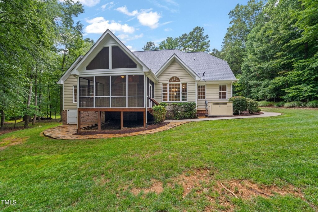 Nestled within the serene enclave of Grand Oaks Estate in Hillsborough, you'll find the primarily brick residence at 505 Deerhaven Court. This property is strategically positioned on a secluded cul de sac lot, ensuring utmost privacy. The house features a generously sized gourmet kitchen complete with a large central island for additional workspace. A multitude of cabinets, gleaming granite countertops, and brand-new appliances to include a refrigerator and dishwasher, make this kitchen a cook's dream. Adjacent to the kitchen is a sunny breakfast nook, providing effortless access to the spacious screened porch. The first-floor primary suite is a private sanctuary offering an expansive walk-in closet, an en-suite bathroom with a walk-in shower, separate tub, and dual vanities. A second bedroom on the same floor comes with a full bath. The main level also boasts lustrous hardwood floors throughout. A private office filled with ample sunlight is perfect for those who work from home. The house also features a formal dining room for hosting gatherings. A relaxing family room with a cozy fireplace adds a touch of warmth and comfort to the home. The second floor houses an additional three bedrooms and a bonus room for extra space. Leading off from the screened porch, there is a stone patio, perfect for outdoor relaxation. The home comes equipped with a whole house generator for peace of mind during power outages. Furthermore, the community offers a neighborhood playground and tennis court, enhancing the outdoor living experience. In summary, 505 Deerhaven Court in Hillsborough is a thoughtfully designed home offering a perfect blend of privacy, comfort, and luxury. Easy drive to Duke University and Medical Center, Downtown Durham, Hillsborough, and UNC.